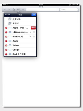 首次打开Safari的时候会弹出书签菜单,如果不想访问苹果推荐访问的网站,可以直接点击屏幕上放的网址栏。