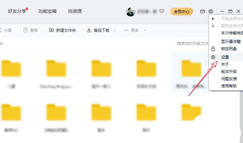 1、首先,我们打开百度网盘客户端,点击页面右上角图标,选择设置