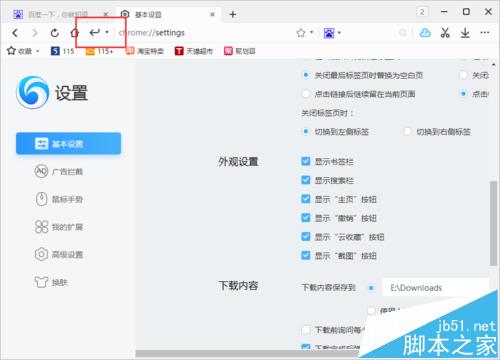 115浏览器中,在工具栏中默认没有显示撤销按钮。可是我们需要撤销按钮显示在工具栏中(如下图,没有显示红方框中的符号)。那么,我们应该怎么设置呢?一起来了解下吧!