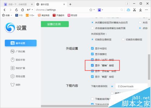 6、在基本设置选项卡的右侧窗格,找到“外观设置”下的“显示撤销按钮”选项,并将此选项勾选。如图所示;