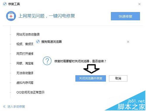 9、充分利用搜狗浏览器的修复工具,可以解决很多稀奇古怪的问题。
