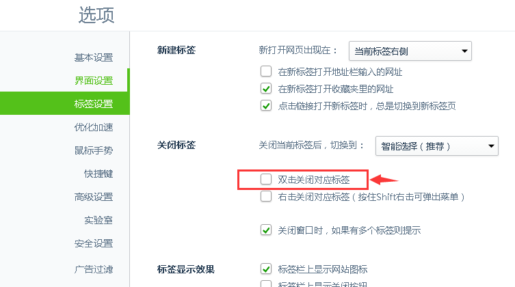 以上就是关闭360浏览器中双击关闭标签的方法了,很多用户都曾经被这个功能误关过界面,有了这个方法就可以轻松解决这个问题了,需要的朋友快来试一试吧!