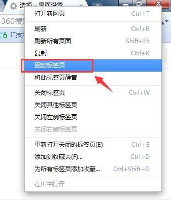 如果是极速浏览器,如果没有这个选项那么可以通过下面的方法(右键 > 固定标签页)