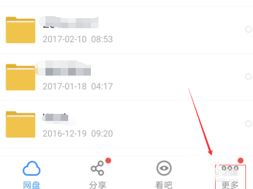 2、登录手机端百度云盘以后,在百度云盘首页最下面我们找到“更多”并点击进去。