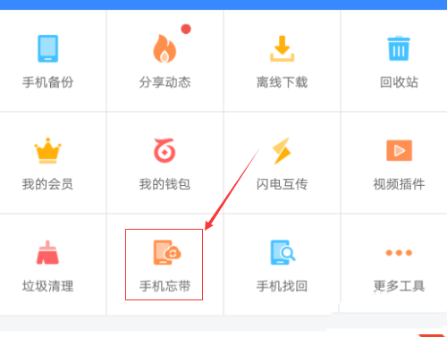 2、在功能宝箱页面我们找到“手机忘带”并点击进入。