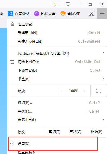 2、在下拉菜单中选择设置菜单,如下图所示