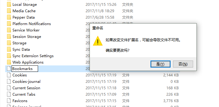 7、然后对Bookmarks.bak重命名为Bookmarks