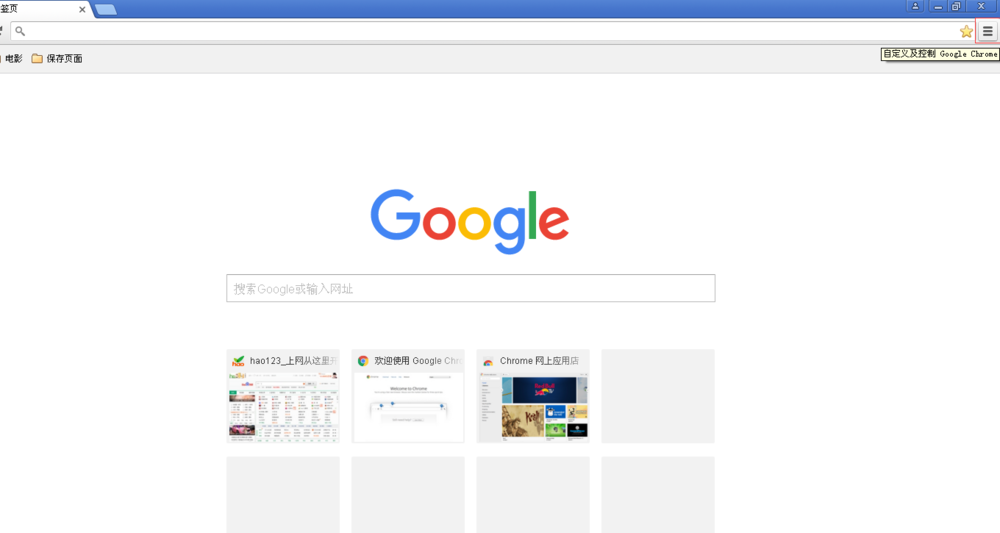 2、鼠标移动到Google浏览器的右上角,会弹出“自定义及控制Google Chrome”的提示信息。如下图: