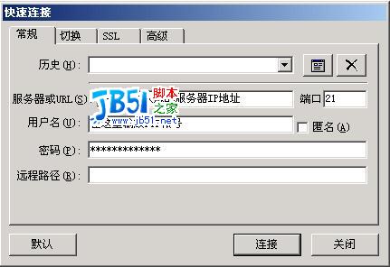 第四步:输入您的服务器的信息(IP地址、FTP帐号和密码),信息输入完成点击“连接”即