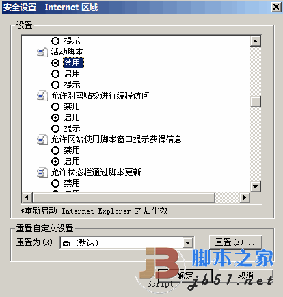 脚本之家编辑注: 其实只要禁掉 活动脚本即可
