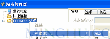右键点击“FLASHFXP站点”,选择“新建”-“站点”,如图: