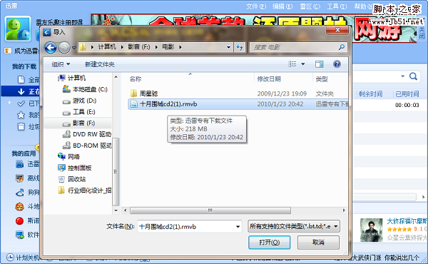 然后,在打开的窗口中,选择未下载完成的文件,然后点击下面的“打开”按钮。如下图: