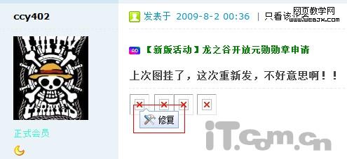 1、把鼠标移动到网页中显示不出的图片上,会出现“修复”按钮。