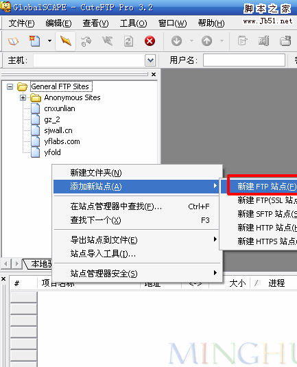 首页请先下载CUTEFTP软件:https://www.jb51.net/softs/318.html