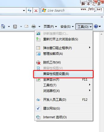 开始使用这个功能: 1、点击IE右侧的“工具”按钮,选择“兼容性视图设置”,在弹出的对话框中,勾选“在兼容性视图中显示所有网站”。这种设置可以达到一劳永逸的效果。