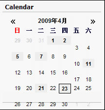 示例一:麦田守望者博客的左侧日历栏