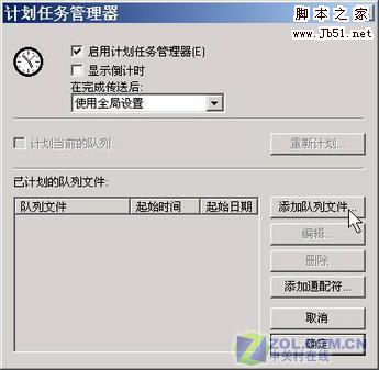 选择“传送”→“按计划任务传送”,在打开的窗口中选中“启用计划任务管理器”复选框,再单击“添加队列文件”按钮(如图2)。打开先前保存的ccu.que,接着,在打开的(如图3)所示的窗口中设置定时上传时间。按下“确定”按钮即可把它添加到当前列表中(如图4)。