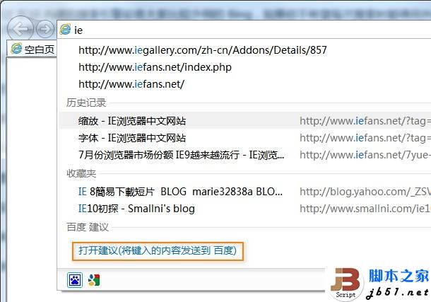6、全部弄好后,以后当我们在 IE网址栏输入网址、名称或关键字时,下拉选单中会自动出现一些你可能会用得到的、自动出现的关键字,点一下关键字即可马上搜索你要的相关资讯。