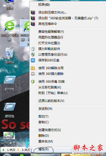 桌面建立360极速浏览器无痕浏览快捷方式的小技巧
