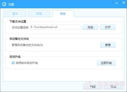 点击账号右边的设置,进入【设置】界面,点击【高级】即可更改您下载文件路径。