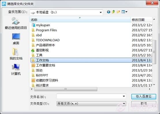 1)点击“上传”选择文件夹,然后点击【存入百度云】