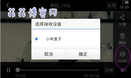 那肿么样才能很好的解决这个问题捏?西西最终在百度云手机版上找到了答案!没错,那就是利用百度云视频播放时的「DLNA无线投屏」功能来实现。而且电视端也无需安装百度云,只要电视(或网络机顶盒)支持标准的DLNA协议就行,这个一般的安卓智能设备都支持的。不过记得手机和电视一定要处于同一局域网下哦!