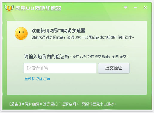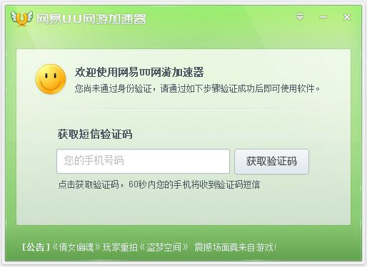 网易UU免注册免登录,只要您在首次使用时提交身份验证,下次启动即可直接进行加速。点击欢迎界面中的开启免费加速,将跳转到身份验证界面。