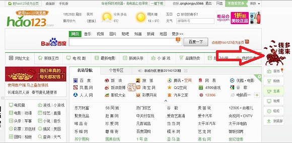 一、首先进入Hao123网站,然后点击右侧的“马上发钱,钱多速来”广告图片入口,如下图所示:
