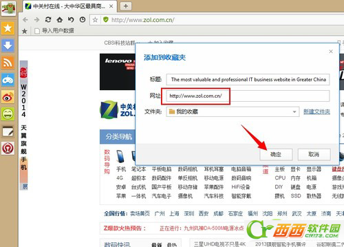 在收藏夹中,选择“添加”即可将当前页面收藏好。当然,您也可以将对应的地址做修改操作,设置完毕之后,点击确定即可完成。