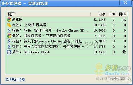 可使用任务管理器中查看Google Chrome 中所运行的特定进程的详细信息,或强行关闭行为不正常的标签页或应用程序。