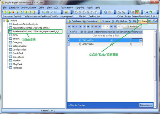 三、打开SQLite Expert,首次打开会提示升级,点击小叉叉不理会.点击File ——> Open Datebase,文件类型选择"Any File(*.*)",找到迅雷目录下的"TaskDb.dat"文件并打开.