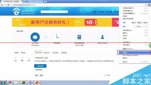 1、打开右上角菜单,选择“设置”