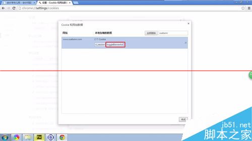 6、单击搜索结果,即会显示该网站的cookie,我们这次的目的是删除“toogleBannerAd”