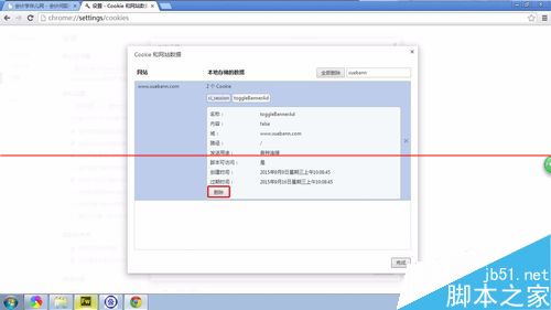 7、单击我们想要删除的cookie,即会显示该cookie的详细信息,点击左下角的“删除”按钮即可将其删除