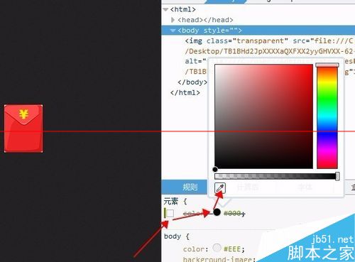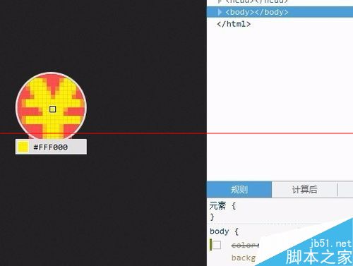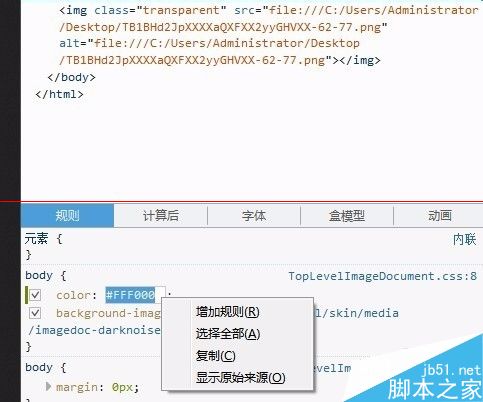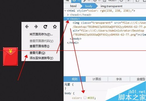 3、打开图片后在浏览器里鼠标>>右击>>查看元素,点击<body>标签就可以找到颜色代码
