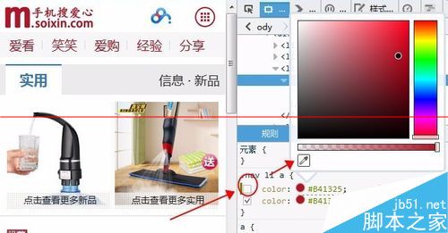 1、打开任意网站右击查看元素,点击箭头有些浏览器是放大镜标志从页面获取一个元素随便去取个字单击,在规则样式中找到一个颜色代码。后面其他步骤同上4.5.6.7可以提取浏览器中的任何部位