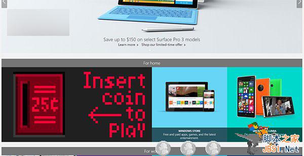 是不是感到这个“秘籍”有点熟悉?貌似有点像《魂斗罗》30生命的配置方法,但还是有区别的。注意,如果你用Win10的Edge浏览器打开微软英文官网,这个“秘籍”无效。所以还是用第三方浏览器比较好一些,当然IE11也是可以的。拖动屏幕下方的“游戏币”(上图忍者猫左边的三枚)到投币口,就会打开如下完整庆祝页面:
