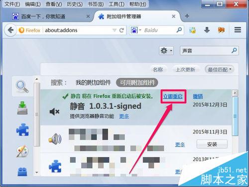 6、安装完成后,需要重启火狐浏览器,才能生效,按“立即重启”按钮即可。