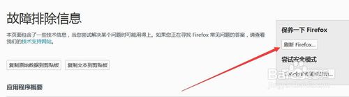 6、打开“故障排除信息”页面,然后点击上面的“刷新firefox”按钮后,重新启动firefox浏览器