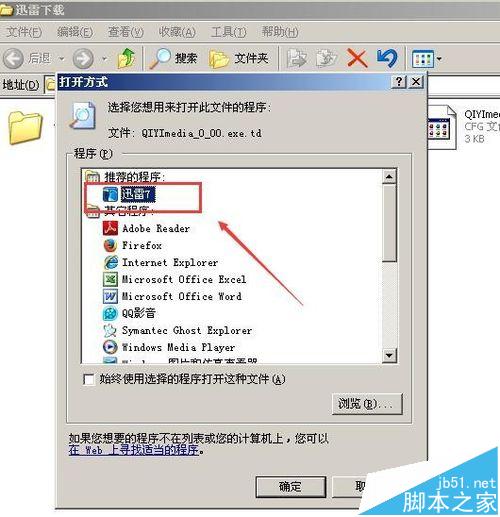 6、然后选择迅雷来打开,点击【确定】