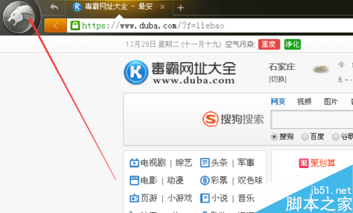 1.打开猎豹浏览器,点击浏览器左上角的LOGO。