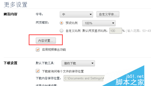 4.进入更多设置页面,选择内容设置。