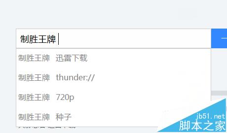 5、或者我们搜索以后,我们比如搜索制胜王牌,搜索了以后,我们就会看到下面给的几种提示了,我们就可以选择下面的搜索了。