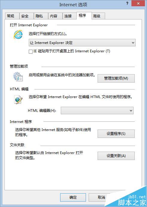 1、打开IE浏览器,在工具选项卡选择Internet选项-程序
