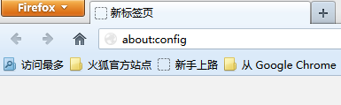 1、首先打开Firefox浏览器,在地址栏输入“about:config”(不包含双引号,下同),如图所示: