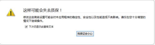 2、按回车键后,打开了一个警告页面,单击“我保证会小心”即可,如下图所示: