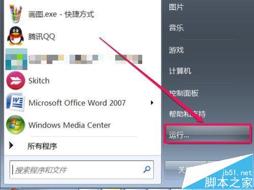 1、先从开始菜单中打开“运行”程序。