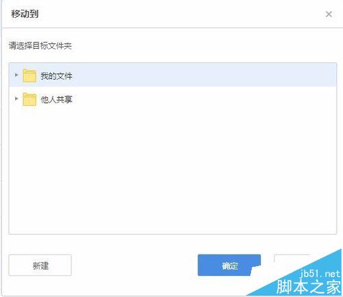 打开需要移动或者复制的文件夹,在文件夹名称右侧单击移动/复制按钮,出现移动/复制界面,在此界面中将显示“我的文件”和“他人共享”。移动和复制文件夹都需要指定目标路径,在弹出的移动/复制界面中,请正确选择目标路径,被选中的目标路径文件夹将高亮显示。选中后点击相应的按钮实现文件夹的移动或者复制。