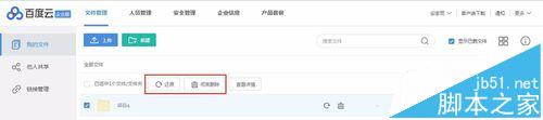 在“文件管理”中,勾选“显示已删文件”,显示出当前目录下的已删除文件/文件夹。选中需要还原,或者彻底删除的文件/文件夹,即可。