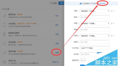 5、其次,可以设置密保问题,有了密保问题,解绑手机或者挂失都很方便。